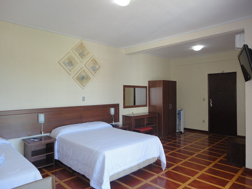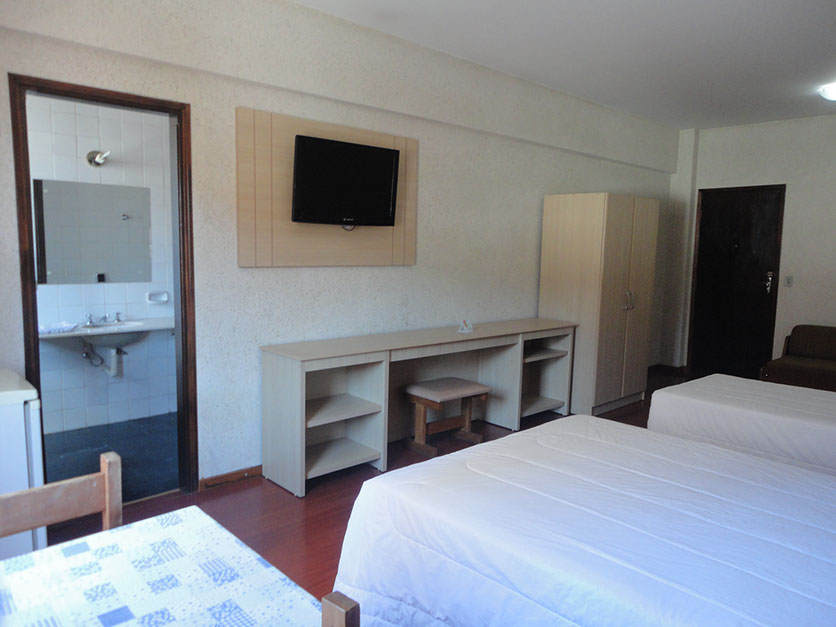TV a cabo, telefone com linha direta,frigobar, ar condicionado, ducha com aquecimento central.