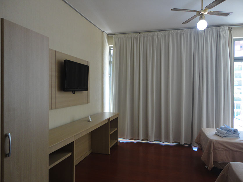 TV a cabo, frigobar, terraço ducha com aquecimento central, telefone com linha direta, ventilador de teto.